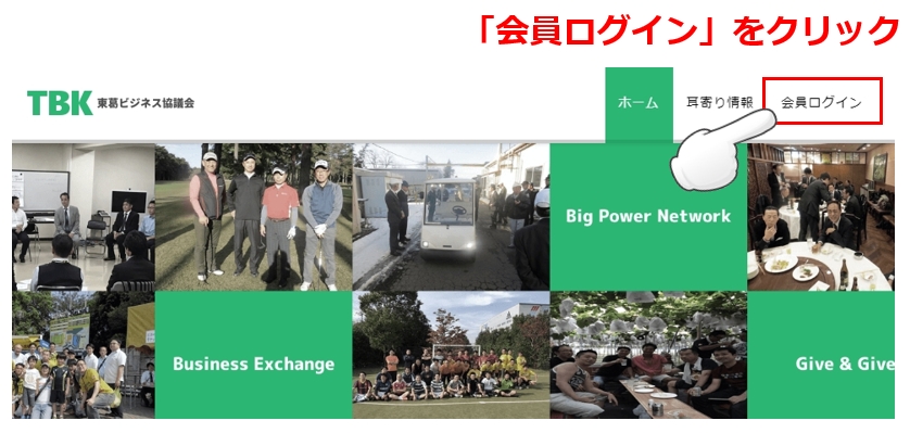 ログインに成功すると、トップページの中ほど(※少し下にスクロールする必要あり)に、「例会のお知らせ」というコーナーが表示されます。