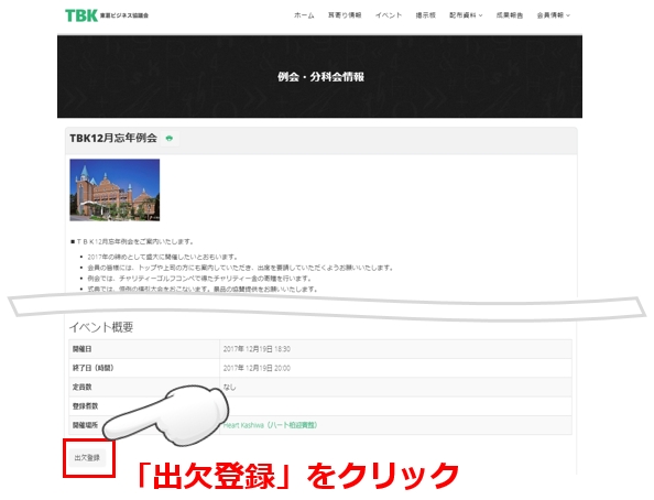 本ページでは、例会や分科会への出欠登録の方法をご案内いたします。