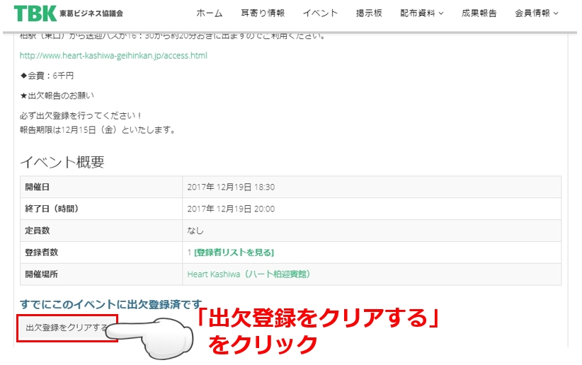 ※出欠登録の解除には期限日が設定されているため、開催日直前での登録解除は行えない場合がございます。その場合はお手数ですがメールにてご連絡ください。